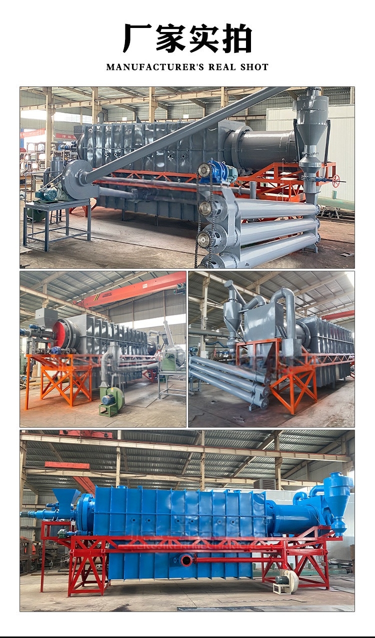 炭化爐通過將有機物質在缺氧條件下加熱,使其分解為炭、可燃氣體和焦油等。連續炭化爐的工作流程包括預熱、進料和出碳,能夠實現24小時連續生產,且炭化時間約為30分鐘。在炭化過程中,產生的可燃氣體可被回收利用,滿足炭化所需的熱能需求,從而提高了能源利用效率,減少了環境污染。